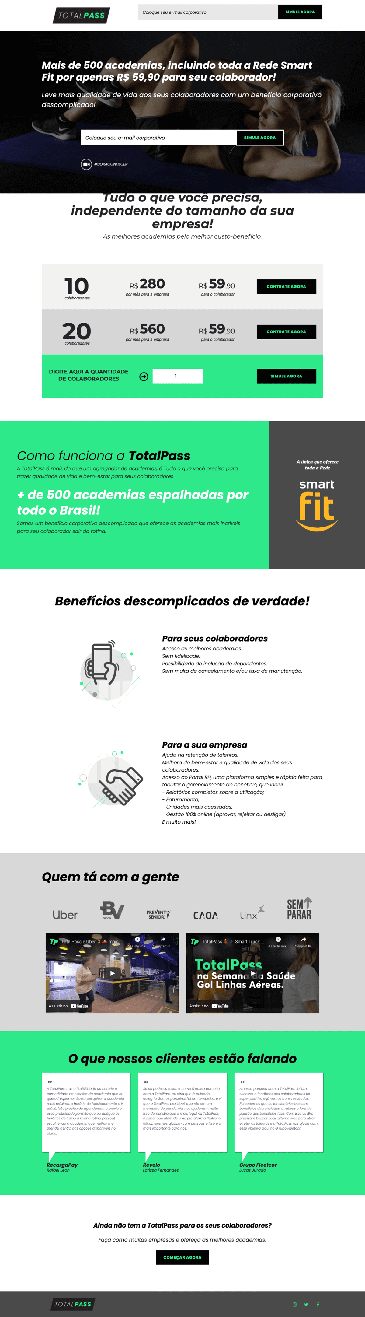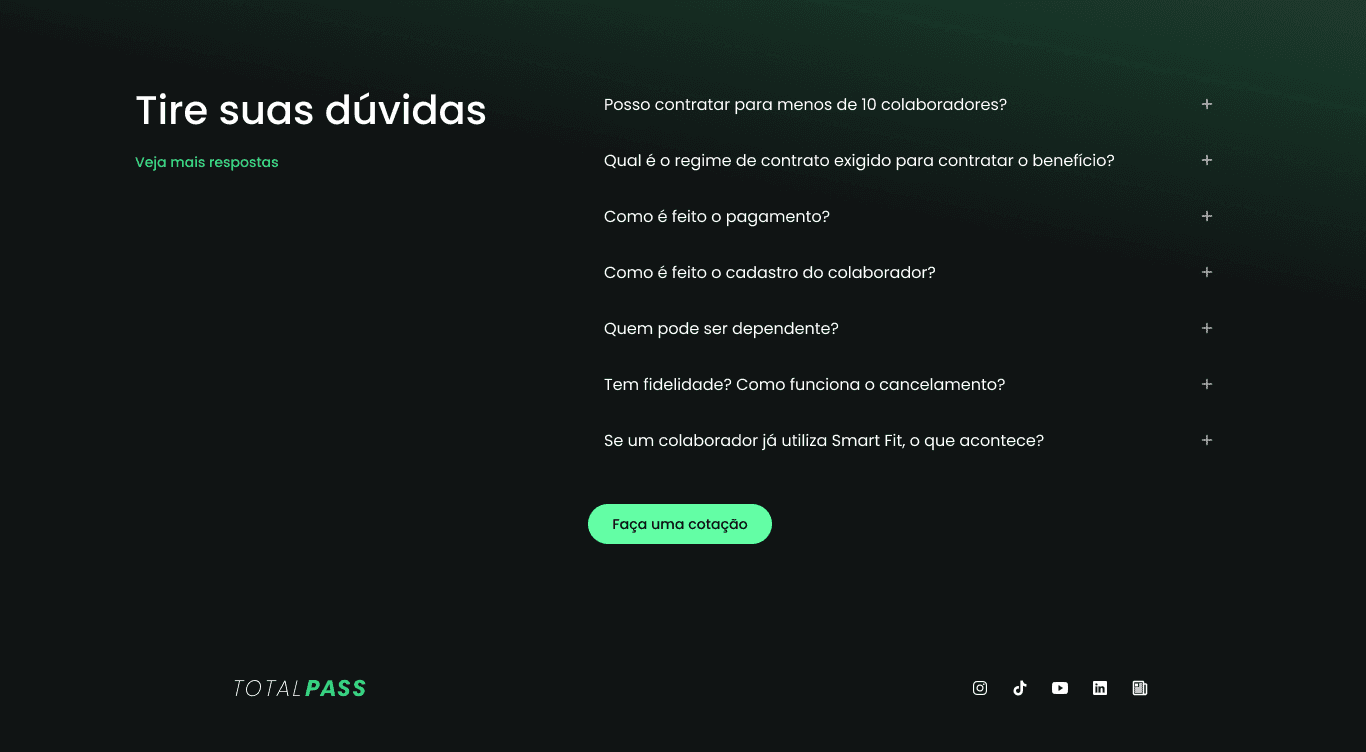 The old page had major issues. Many small businesses thought TotalPass was only for large companies. Most leads still had questions about the benefit, pricing, and how to sign up. On top of that, the design didn’t inspire trust. Since TotalPass is a well-known brand in Brazil, fraudulent websites often try to impersonate it, making credibility even more important.